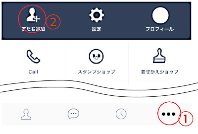 @を押して表示されるAの「友だち追加」を押します。